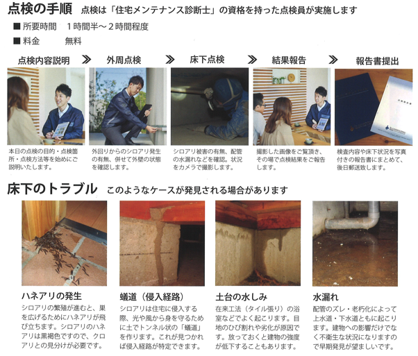永く安心して住まうための第1歩として、床下点検をおすすめします。