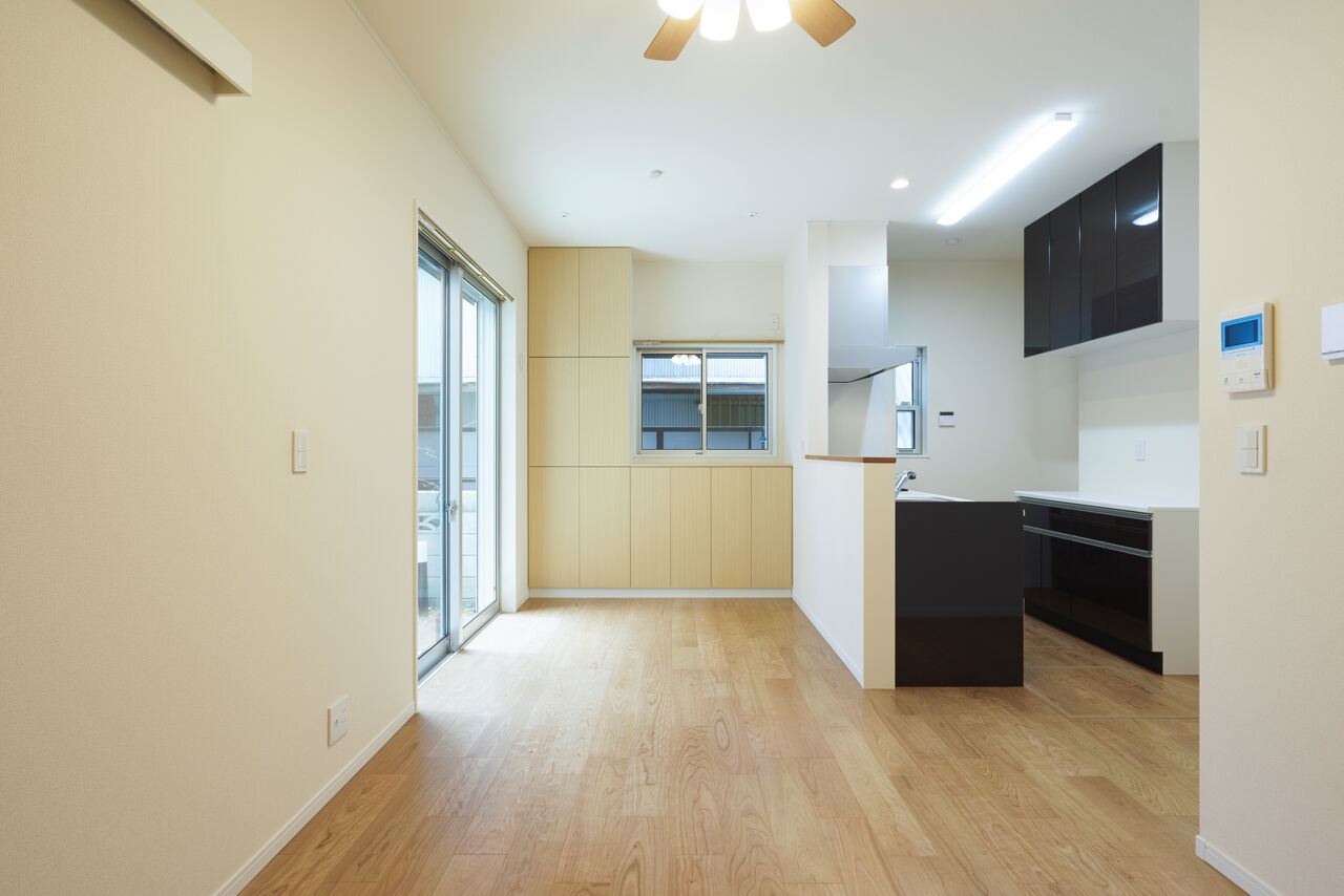 2階内部はデザイン性のある収納階段にロフト付、空調はシーリングファンと熱交換型の換気扇を配置し、住む方にとって快適な空間が備わっています。